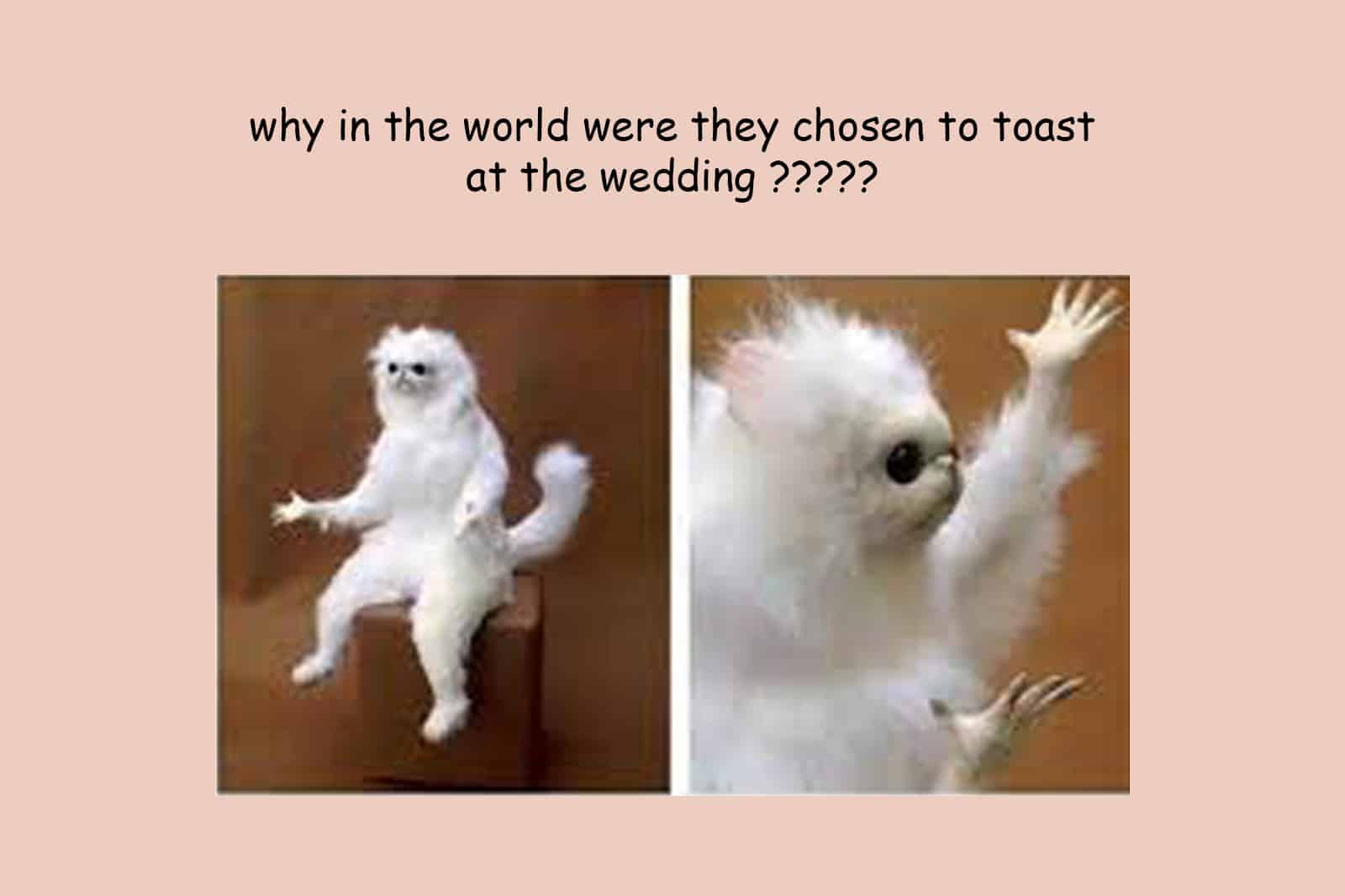 The groom stands up to toast his new bride and says something unbelievable. There’s another love in his life …